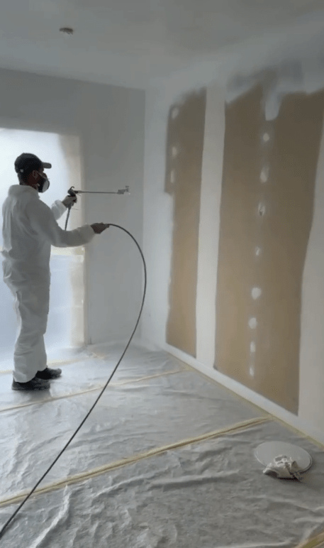 Pour les petits espaces ou les finitions précises, nous utilisons le Graco QuickShot : un pistolet léger, très maniable, qui permet une application rapide sans éclaboussures. Idéal pour les encadrements, les boiseries ou les retouches fines, il offre un rendu propre, net et professionnel.